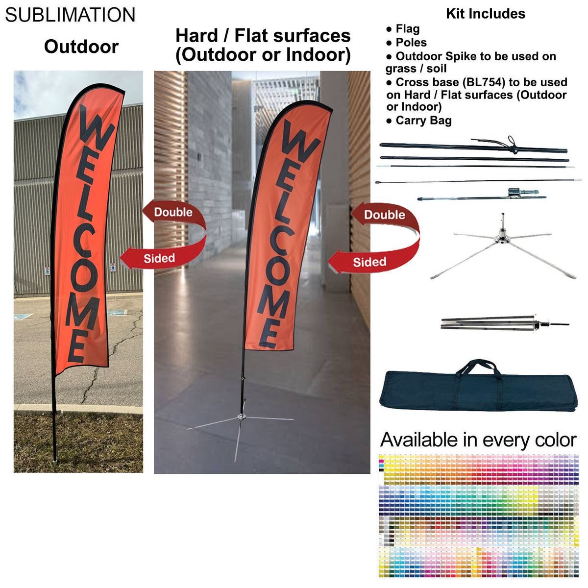 10-foot Small Feather Flag Kit, Full Color Graphics Double Sided, Outdoor Spike base, Indoor Cross Base