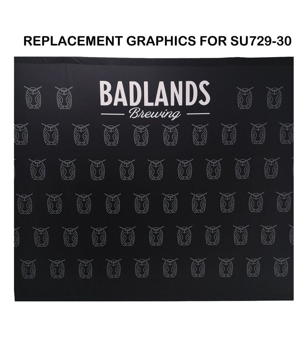 This replacement panel is printed in full color, edge-to-edge using dye-sublimation on premium stretch fabric, ensuring crisp, vivid visuals that hold up under strong lighting and photography. The single-sided design means your artwork is bold and clear, while the backside offers a softer mirrored impression — perfect for typical one-way viewing setups.