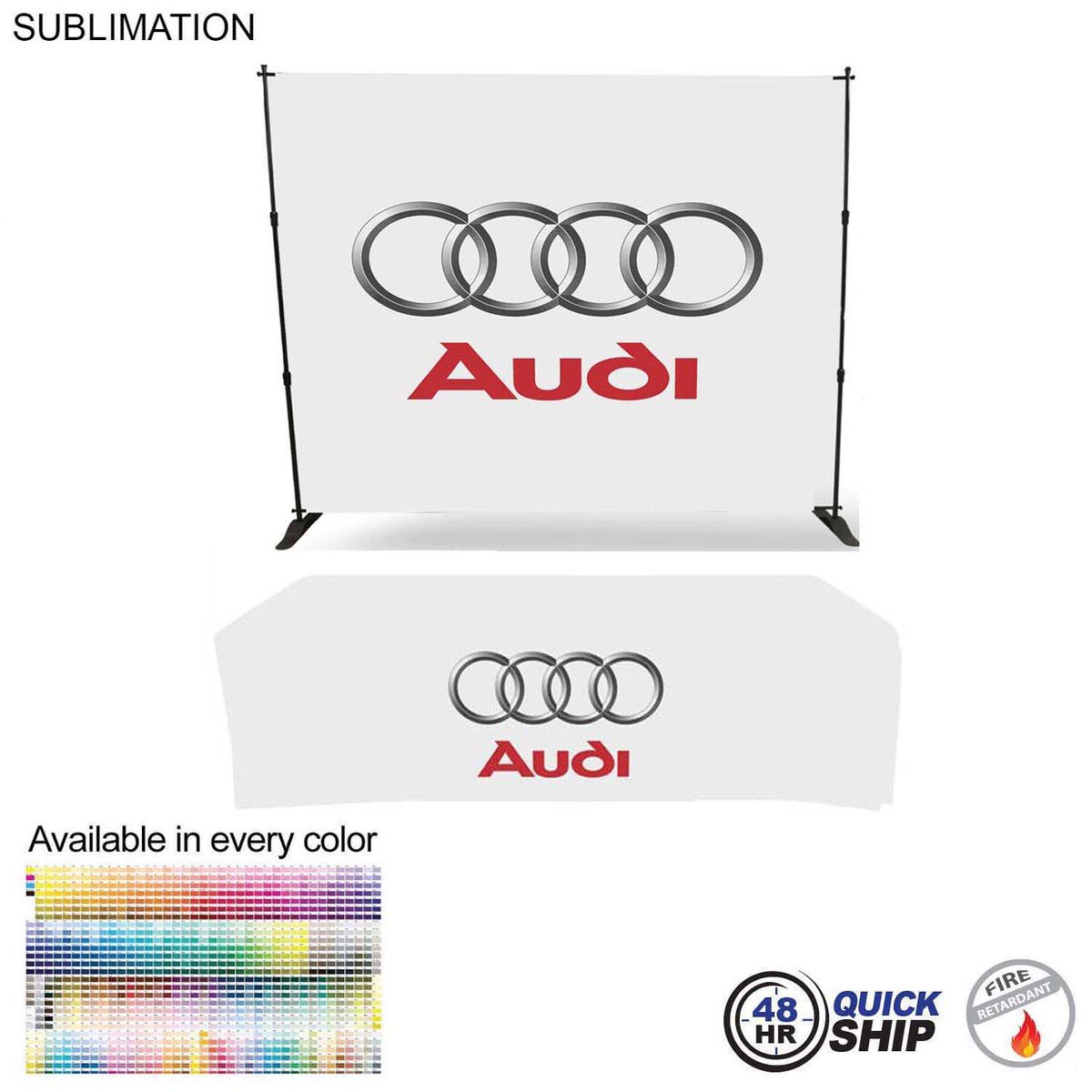48hr Quick Ship Booth Package — 10′ Expanding Display + 8′ Sublimated Tablecloth