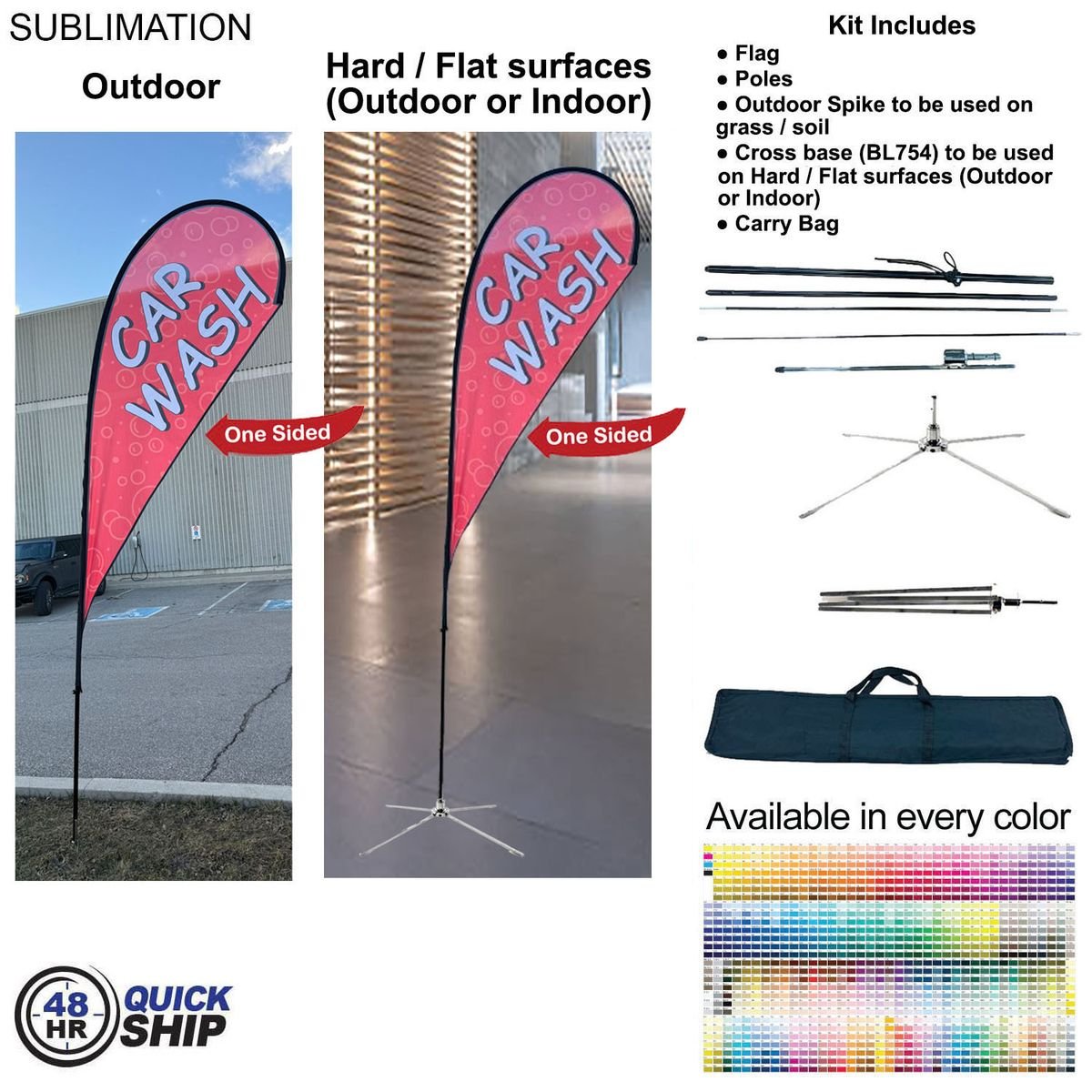 Quick Ship Medium Tear Drop Flag 48Hr Quick Ship - 12' Medium Tear Drop Flag Kit, Full Color Graphics One Side, Outdoor & Indoor base