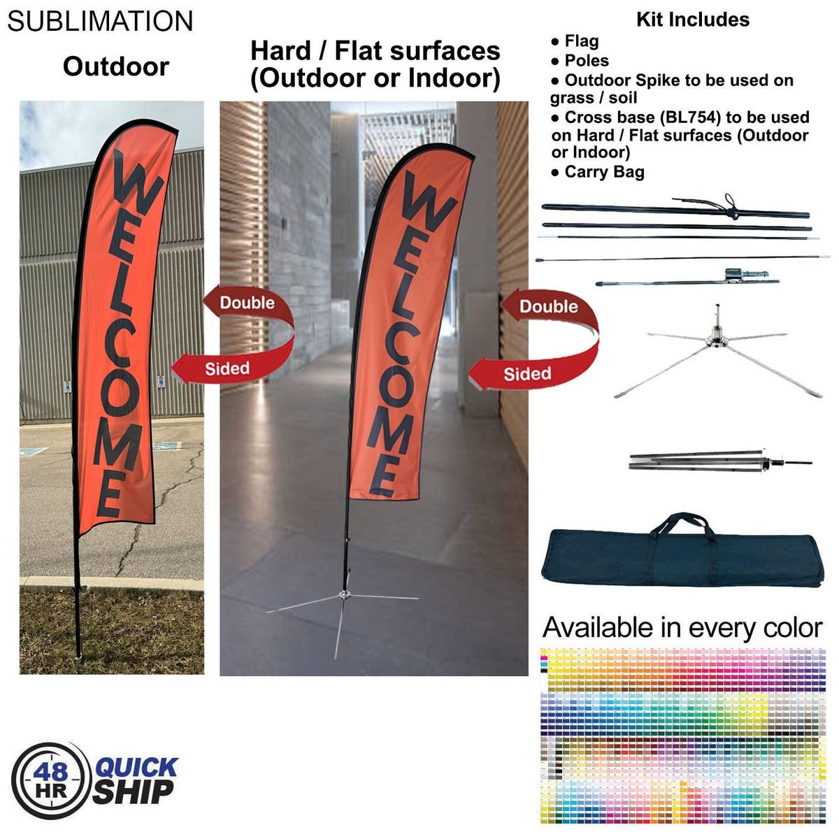 48-Hr Quick Ship Small Feather Flag Kit 10′ – Double-Sided Full-Color Graphics with Indoor & Outdoor Base